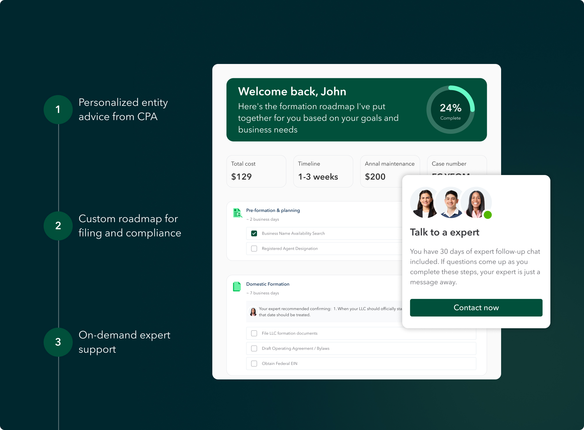QuickBooks Live had traditionally supported SMBs through operational services like bookkeeping and payroll. This work explored a different kind of customer need: high-stakes business decisions around formation and entity structure. I helped define this new service from early research through pilot and product definition, shaping what kinds of guidance customers actually needed and how that support could become a trusted part of their journey.